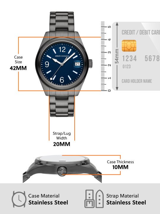 With its blend of gunmetal durability and a refined blue dial, the AX1421I offers a contemporary twist on the classic dress watch, perfect for the man who appreciates understated luxury.