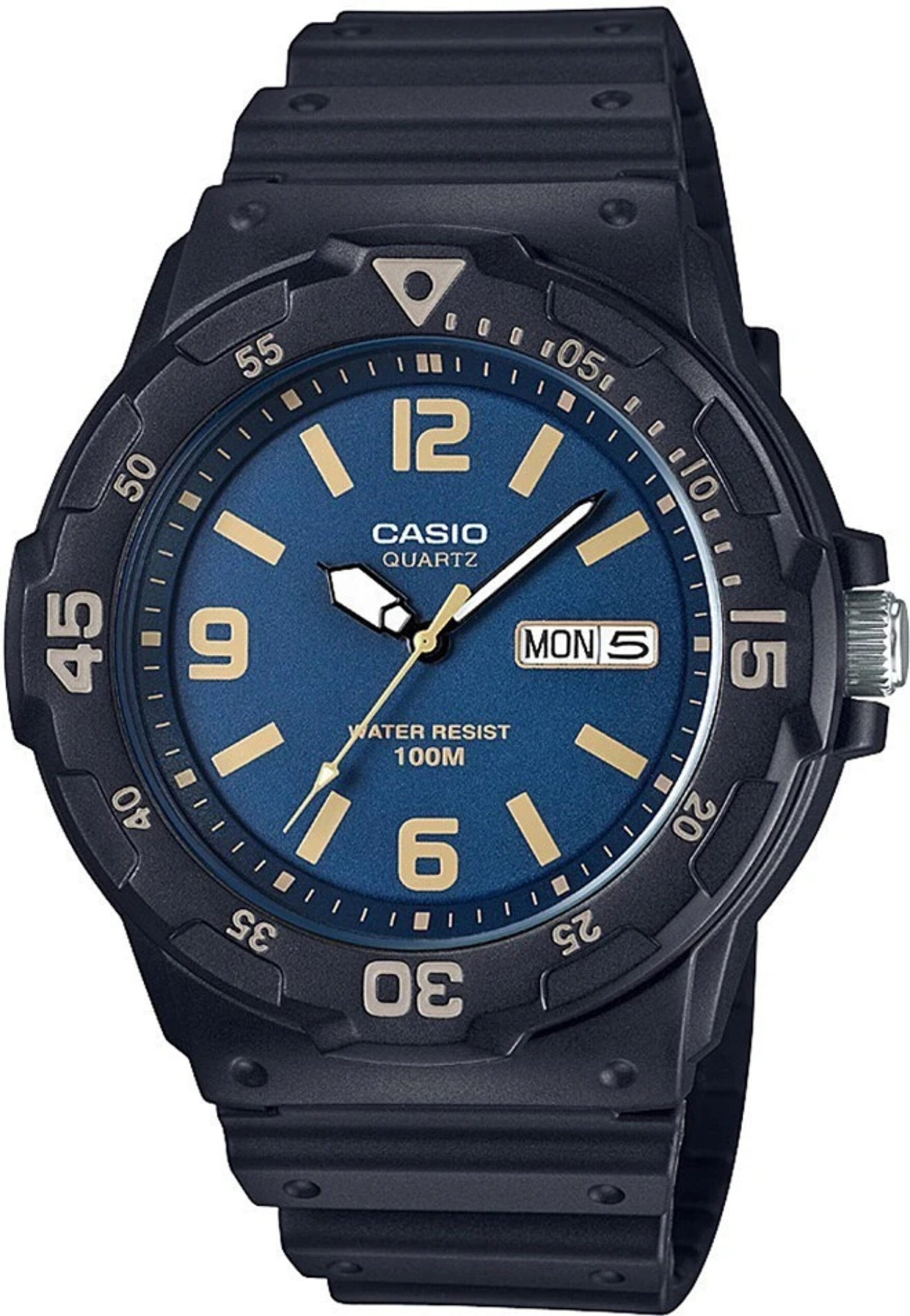 The Casio Youth Analog Watch (MRW-200H-2B3VDF) is the ultimate “dive-style” timepiece for active individuals who need durability without the bulk. Featuring a striking blue sunray dial with bold, easy-to-read tan numerals, this watch is built into a robust black resin case. Whether you’re heading to the pool or the classroom, its 100-meter water resistance and bi-directional rotating bezel offer professional-grade utility at an incredible value.