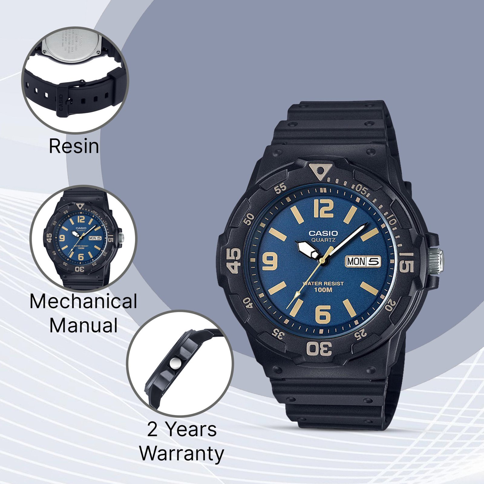 • Precision Quartz Engine: Powered by Casio’s world-renowned quartz movement, ensuring accuracy of within +/- 20 seconds per month.