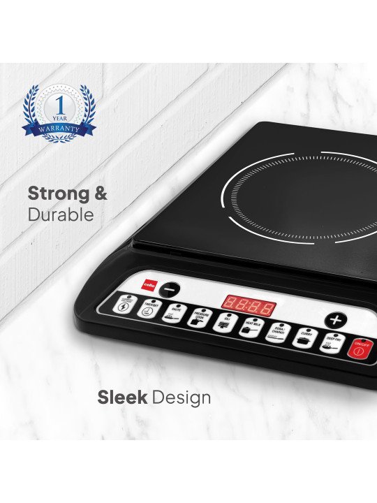 The Cello Trion 2000W Induction Cooktop is a robust and efficient cooking solution designed for speed, safety, and energy savings. Boasting a powerful 2000-watt heating element, it drastically reduces cooking time compared to standard models. Featuring advanced Pan Detection Technology and a 7-segment LED display, this cooktop ensures a smart cooking experience while maintaining a sleek, professional look on your kitchen counter.