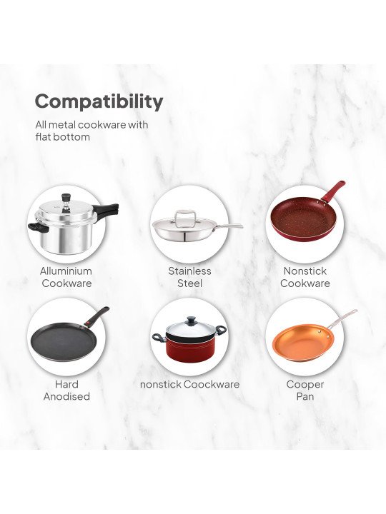 - 5-Stage Power Control: Offers 5 precise power levels to give you complete control, whether you are gently simmering a sauce or deep-frying at high heat.