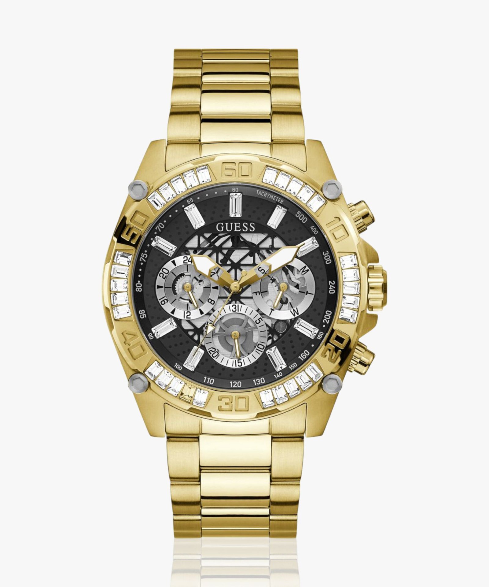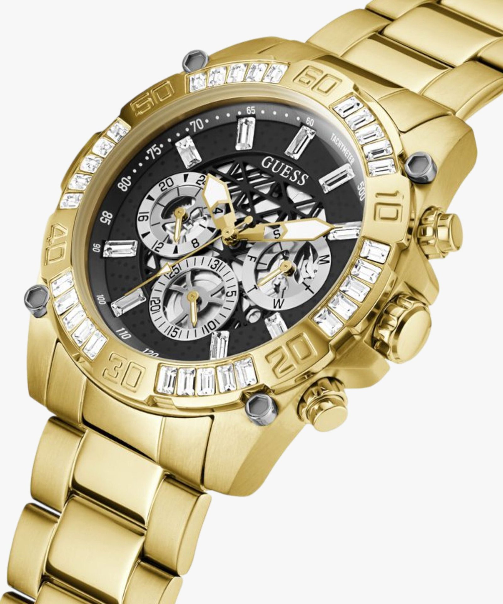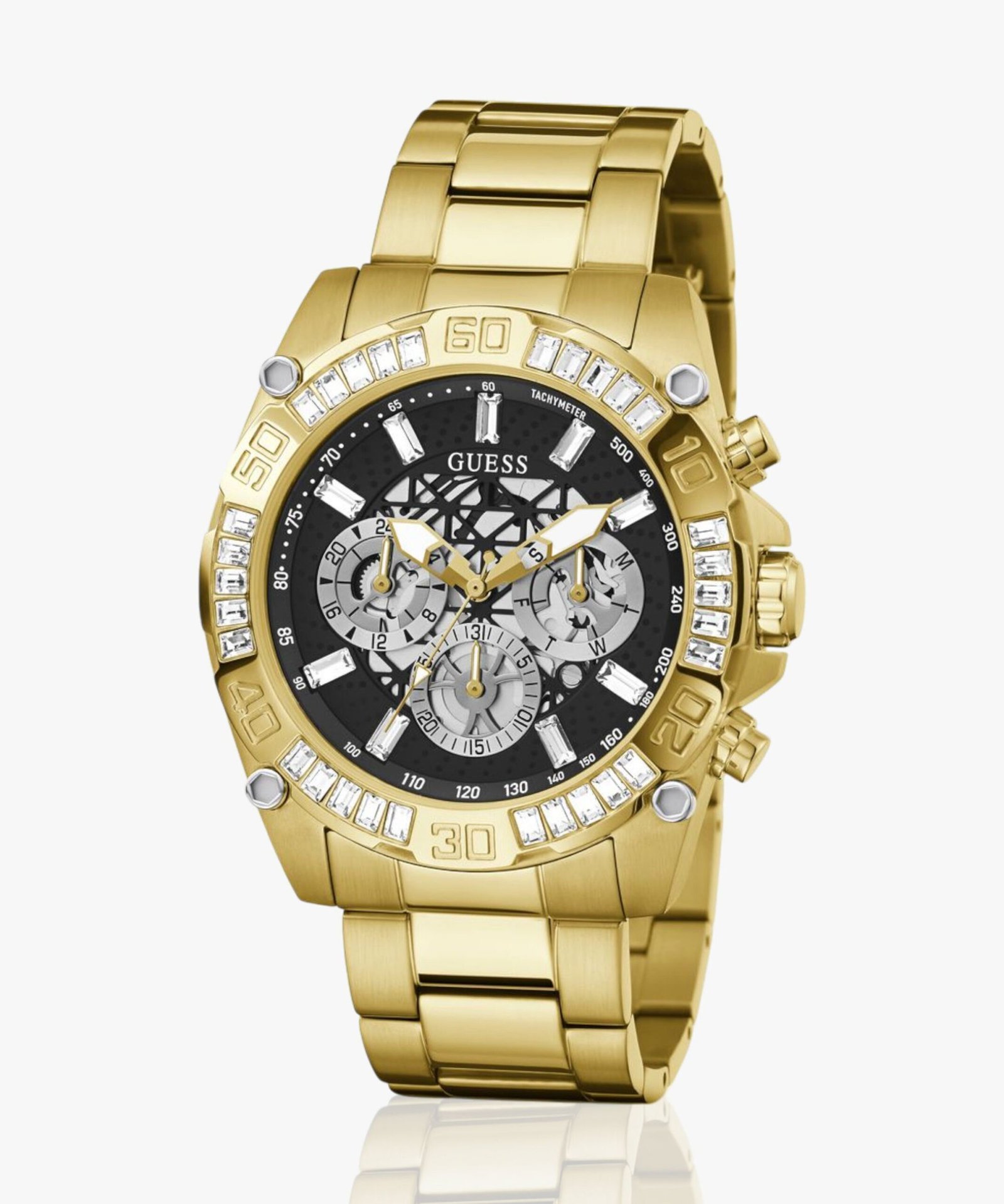 Make a powerful style statement with the GUESS Men’s Analog Watch (GW0390G2). This striking timepiece blends industrial strength with high-fashion aesthetics, featuring a deep black dial and a bold, oversized gold-toned case. Designed for the man who wants to stand out, this watch transitions effortlessly from high-stakes business meetings to upscale social events.