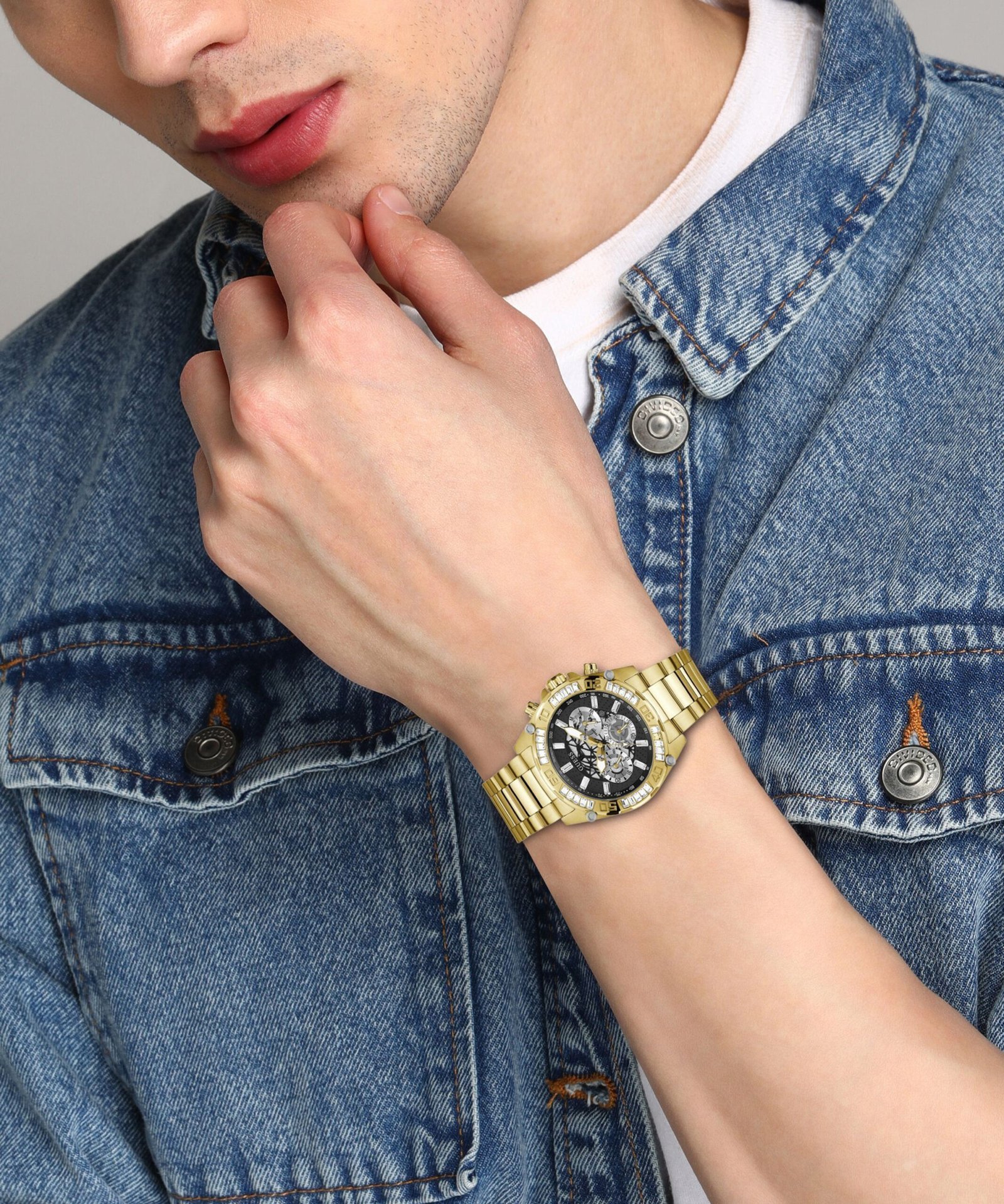• Sleek Stainless Steel Bracelet: Comes with a premium gold-toned stainless steel bracelet strap that offers a secure fit and a commanding presence on the wrist.