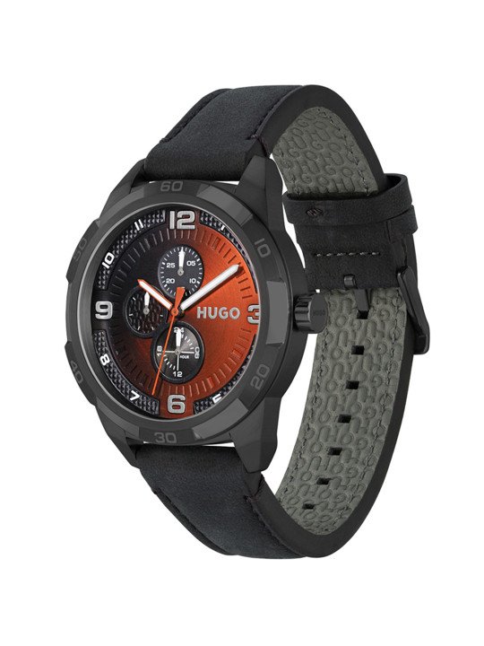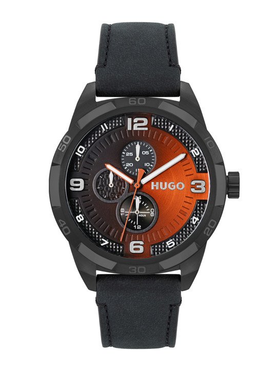 HUGO Men Black & Orange Grip Analogue Multi Function Watch 1530275
