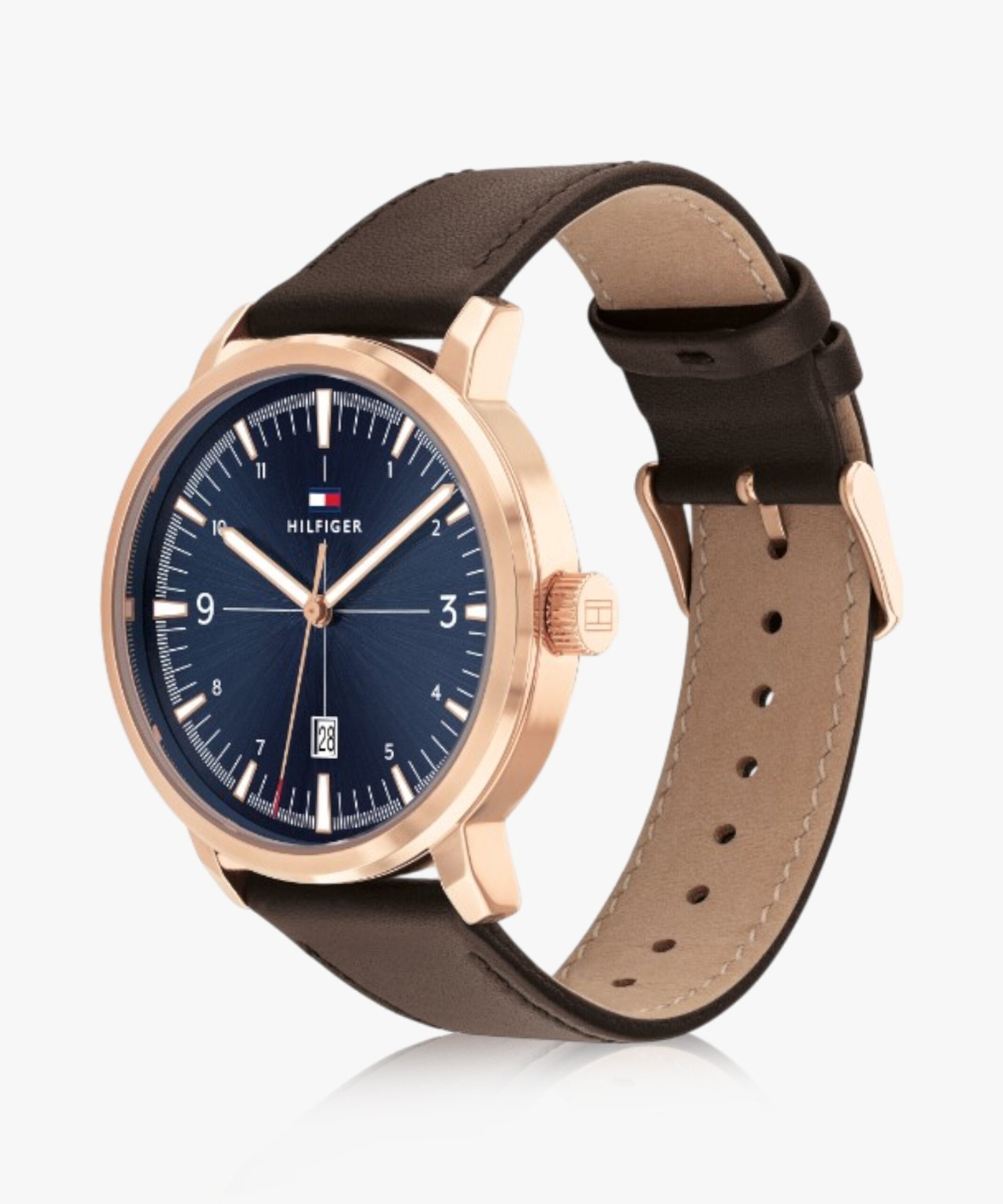 Elevate your everyday style with the Tommy Hilfiger Brooklyn Men’s Analog Watch (1791508). This timepiece perfectly balances heritage-inspired design with a contemporary edge, featuring a deep navy blue sunray dial housed in a luxurious rose gold-toned stainless steel case. Complemented by a rich brown genuine leather strap, this watch is a versatile masterpiece that transitions seamlessly from professional boardroom meetings to weekend social outings.